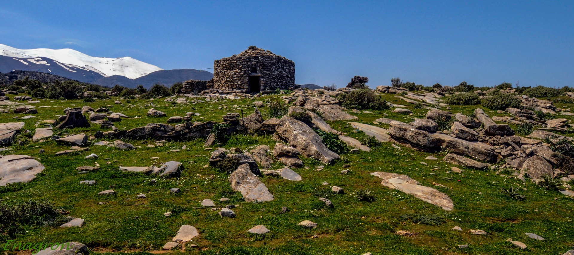 Si vous venez de l’aéroport d’Héraklion, prenez vers l’ouest par la VOAK/E75/A90 en direction de RETHYMNON. 12km après (10mn) prenez la sortie GAZI/ANOGIA sur votre droite. Allez vers l’ouest en direction de TYLISOS (6,6 km/15 mn), puis en direction de GONIES (12km/17mn) et continuez jusqu’à SISARCHA (4,6km/17mn). Suivez la direction d’ANOGIA (2,7 km/6mn) et là prenez la direction d’AXOS (7,5 km/15mn). Quand vous êtes dans le village suivez les panneaux indiquant le village crétois d’écotourisme d’Enagron.