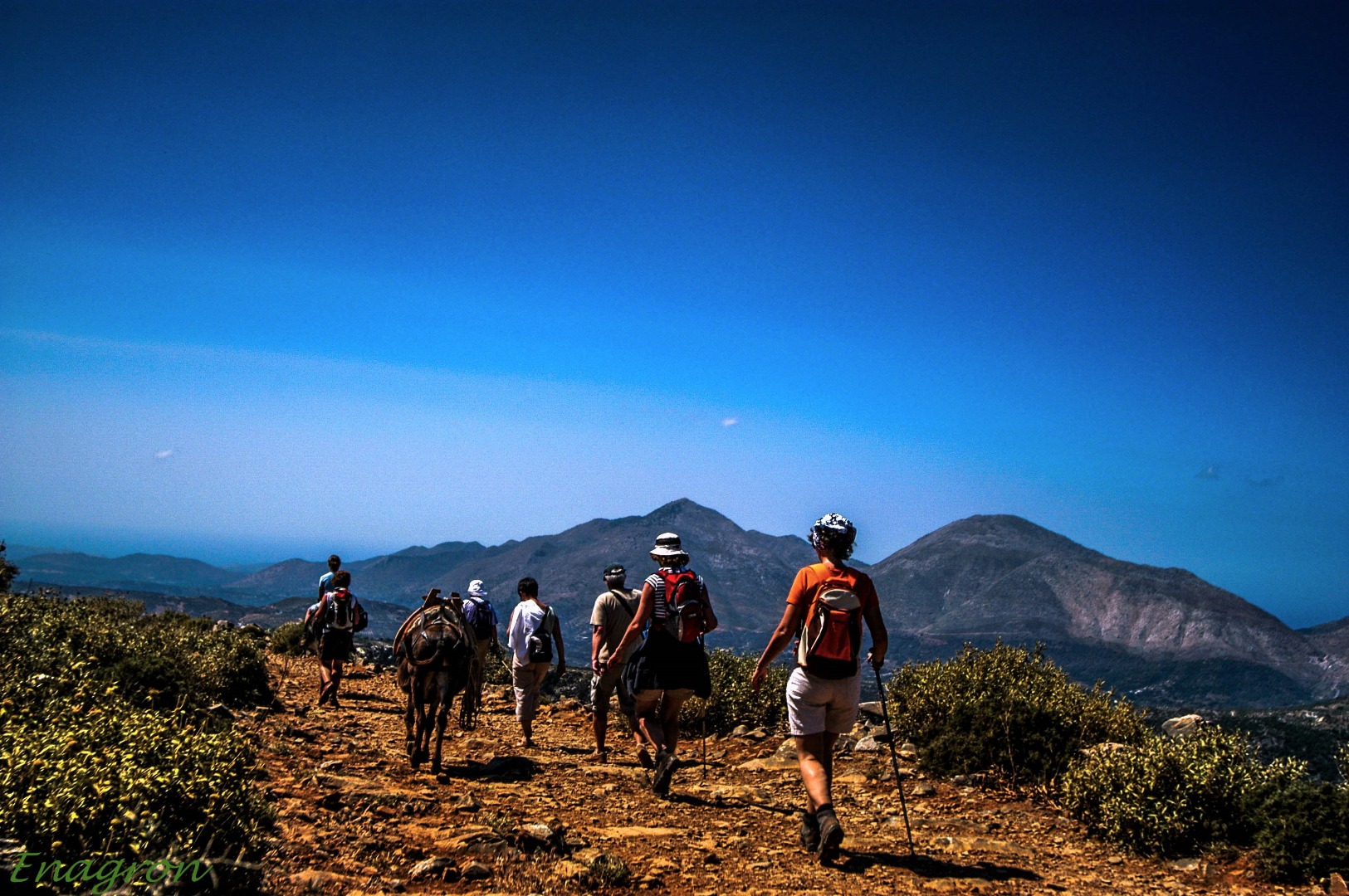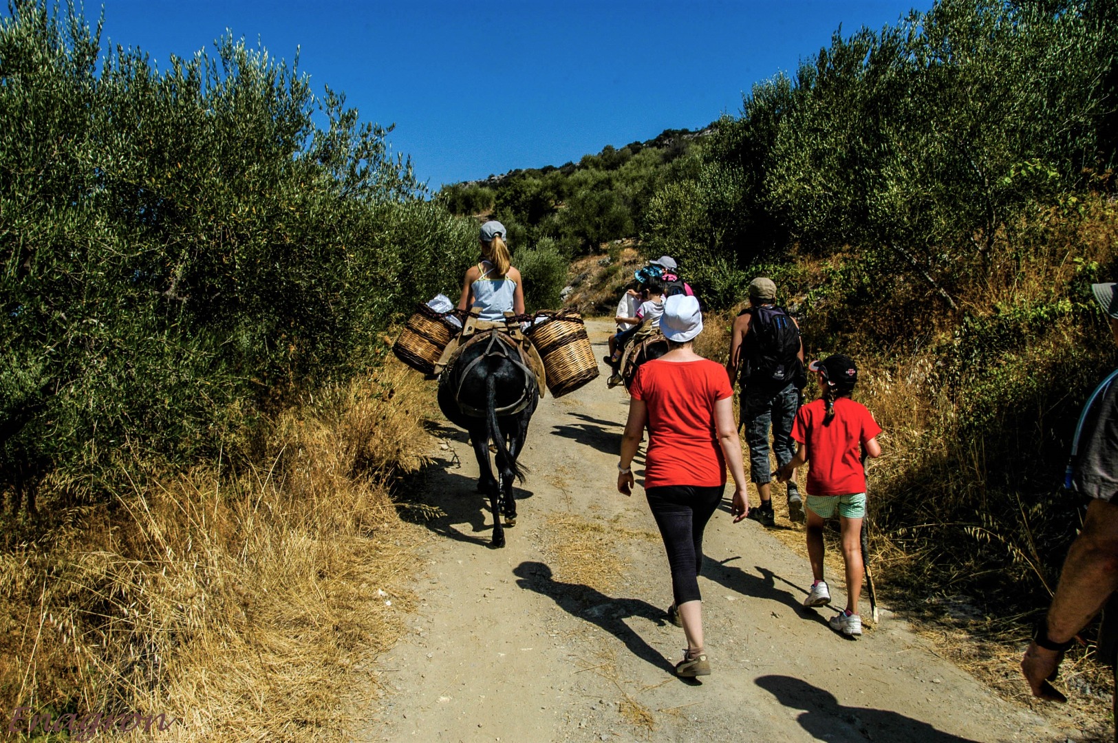 A votre arrivée, suivez la route comme indiqué sur notre site web. Notez qu’une grande partie de la route est une vieille route à 2 voies avec beaucoup de virages. Si vous venez de CHANIA, allez vers l’est par la VOAK/ E75/A90 en direction de RETHYMNON et continuez jusqu’à PANORMO (80km/1h15). Prenez la sortie PANORMO et allez vers le sud en direction de PERAMA (5km/8mn). Prenez ensuite la direction de DAFNEDES (5,8 km/ 10mn), continuez en direction de GARAZO (5,8 km/ 10mn) puis de KATERIANA (5,6 km/ 9mn). A KATERIANA prenez la direction du sud vers AXOS. A environ 1,5km, à 200 m de l’entrée du village, tournez à gauche et suivez la route d’Enagron Village crétois d’écotourisme.