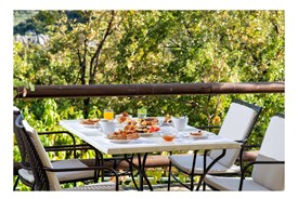 Please during your arrival follow the proposed route as depicted by the map on our website. Notice that a big part of the route is on an old two lane road with a lot of turns. If you are coming from Chania head east via VOAK/E75/A90 toward RETHYMNON and continue until you reach PANORMO (80klms/1h15m). Follow the EXIT to PANORMO and direct south toward PERAMA (5klms/8min). Then move toward DAFNEDES (5.8klms/10min), continue to GARAZO (5.8klms/10min) and KATERIANA (5.6klms/9min). From KATERIANA continue further south toward AXOS. After 1.5klms and 200m before the entrance to the village turn left and follow the road to Enagron Cretan Ecotourism Village.